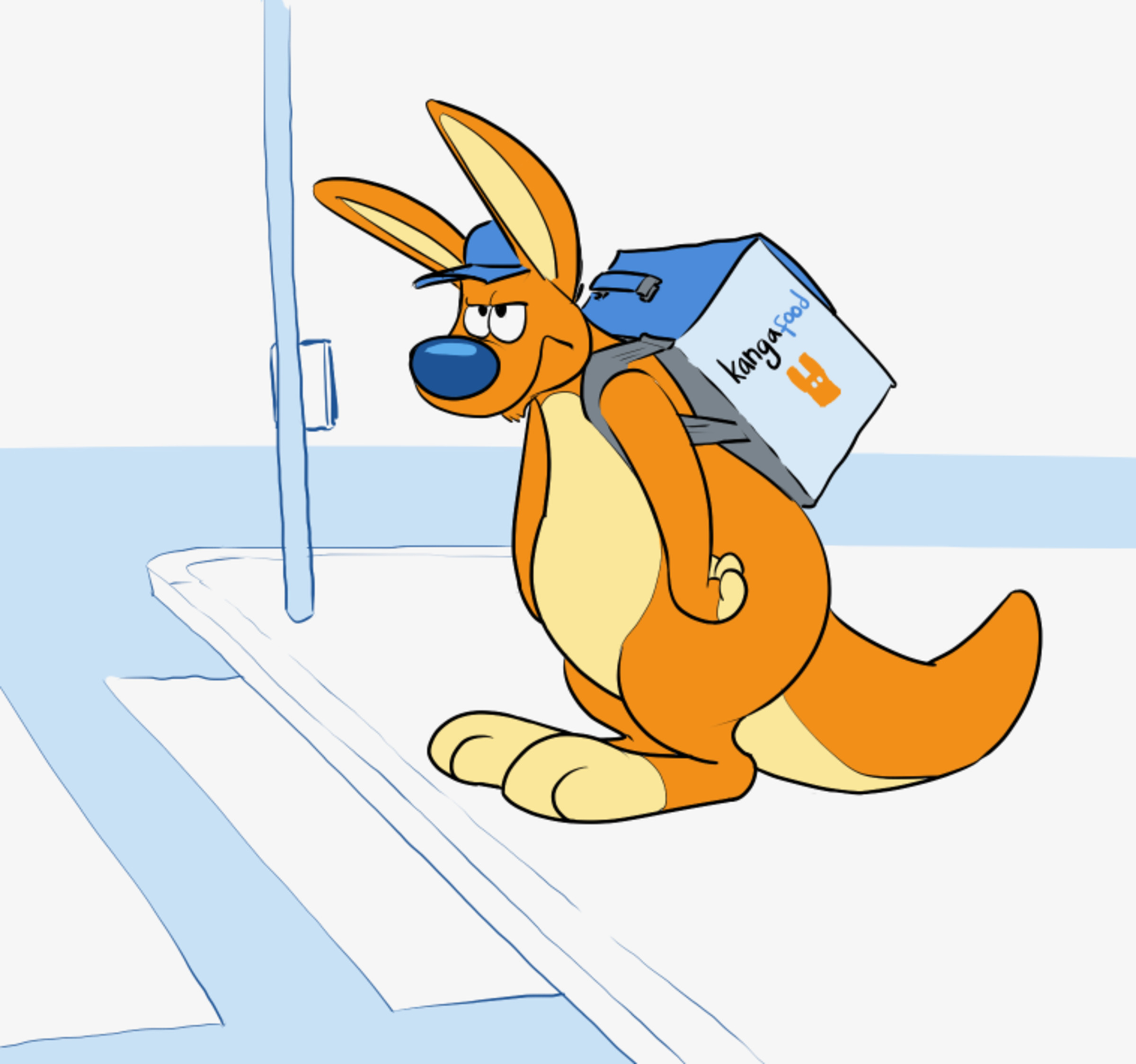 's kangaroo character Berninger joins the food-delivery workforce.